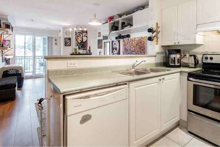 This two-bedroom one-bathroom unit on Kingsway has everything you need in a condo: a balcony, in-unit laundry, a parking stall, and bedrooms that don’t share a wall. And as a bonus, it has a gas fireplace.